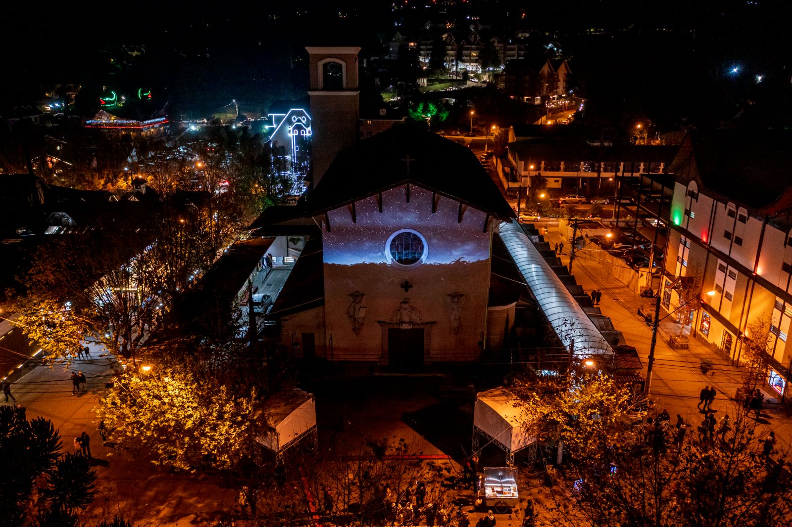 Videomapping “Biomimesis” por BijaRi em Campos do Jordão, na fachada da Igreja de São Benedito.