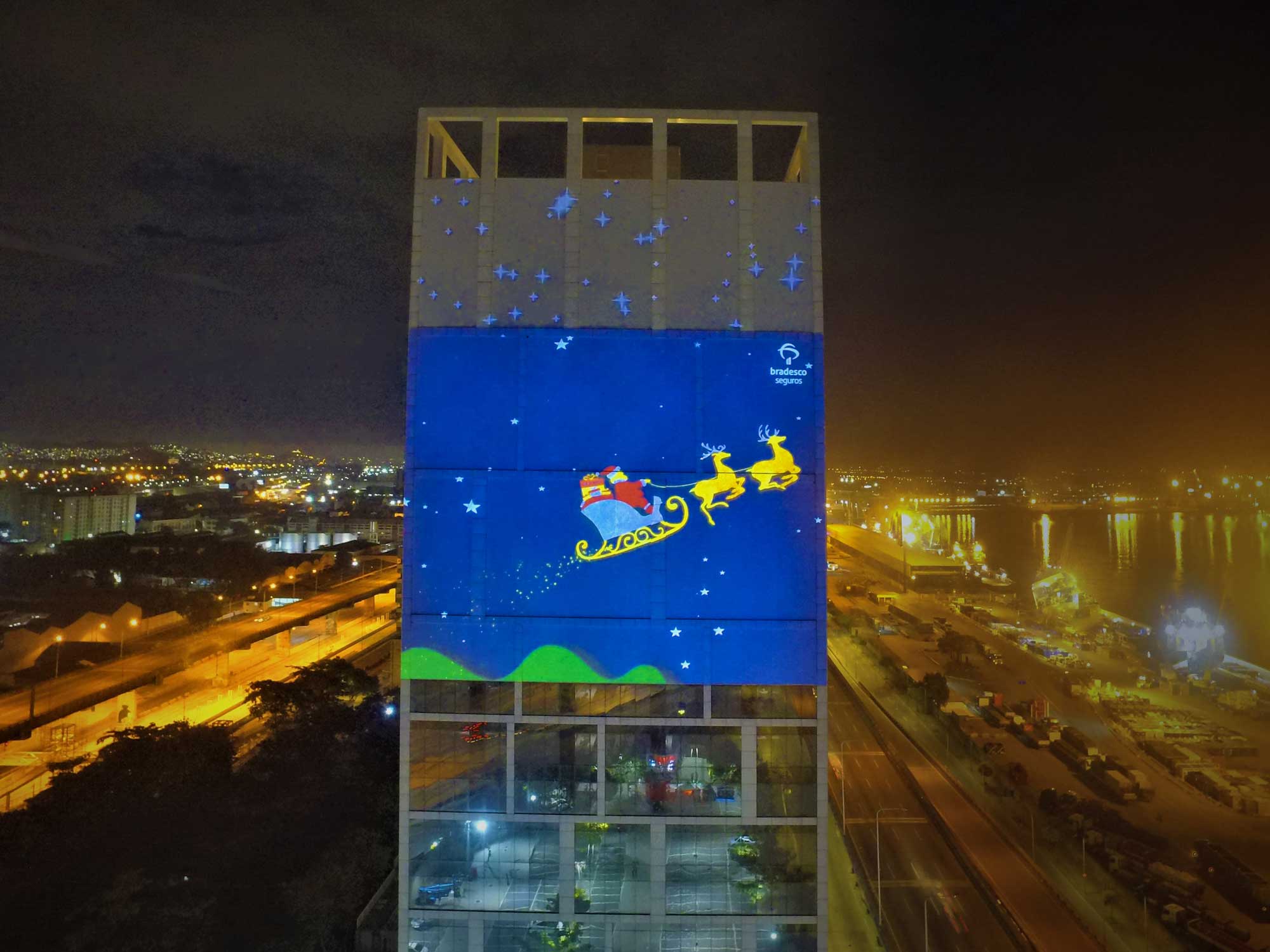 Projeção de fim de ano no edifício sede da Bradesco Seguros, na região do Porto Maravilha, Rio de Janeiro, na passagem de 2021 para 2022.