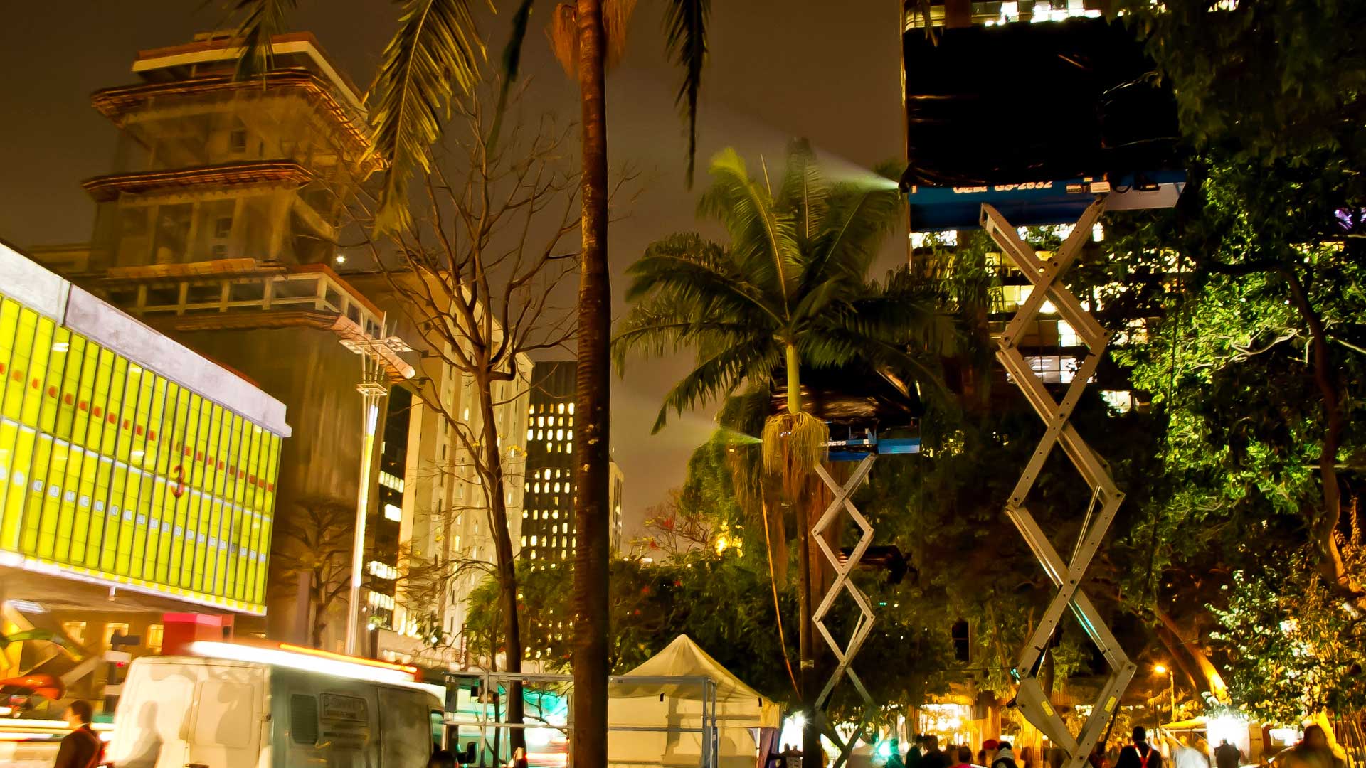 Ação da marca Clinique para a conscientização para o problema do câncer de mama, com uma grande projeção na fachada do MASP, na Av. Paulista, em São Paulo.