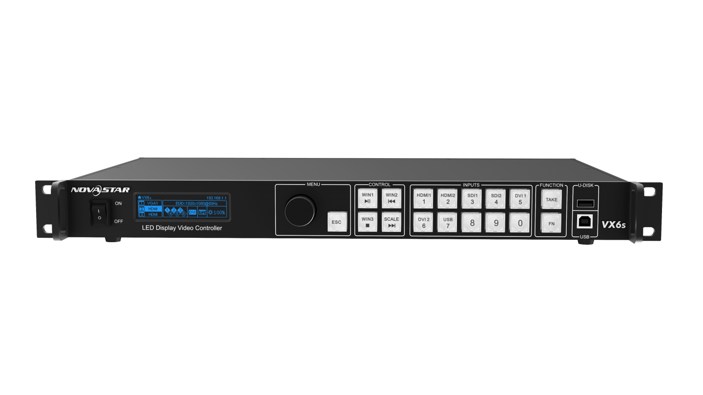 A VX6 é uma controladora de vídeo All-in-One que integra as funções da placa de envio ao processamento de vídeo. Projetado com uma poderosa capacidade de processamento de vídeo, suporta 7 entradas e 6 saídas Gigabit Ethernet. Baseado na plataforma de processamento FPGA, o VX6 suporta vários efeitos de comutação, como desbotamento rápidos e sem interrupção e função scaler, proporcionando uma experiência de controle de tela flexível e excelentes apresentações de vídeo.